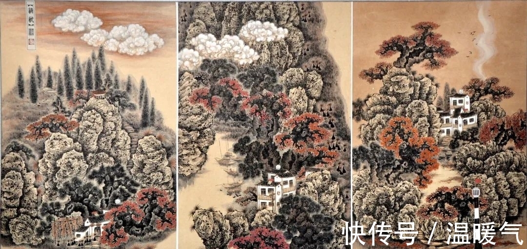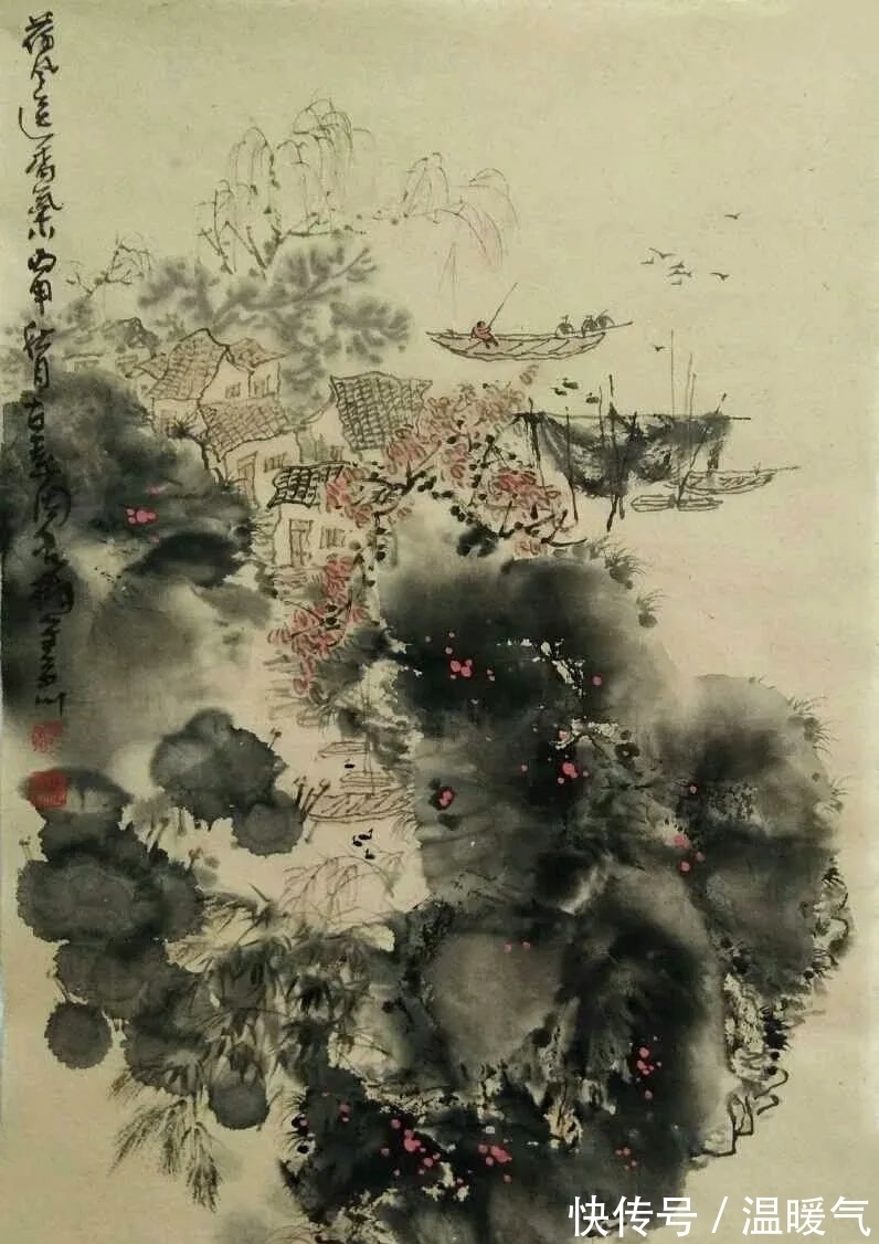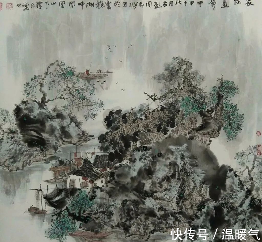 第二是忠树的作品充满浓郁的生活气息,他善于在工而细致,或是在洒脱野趣中,穿插苏北地区乡间的民居庭院,湖畔渔舟,木桥栅栏,草垛鱼网,虽少有点景人物,但满溢温馨的乡土气和人气,具有宁静和谐,清新质朴的美。