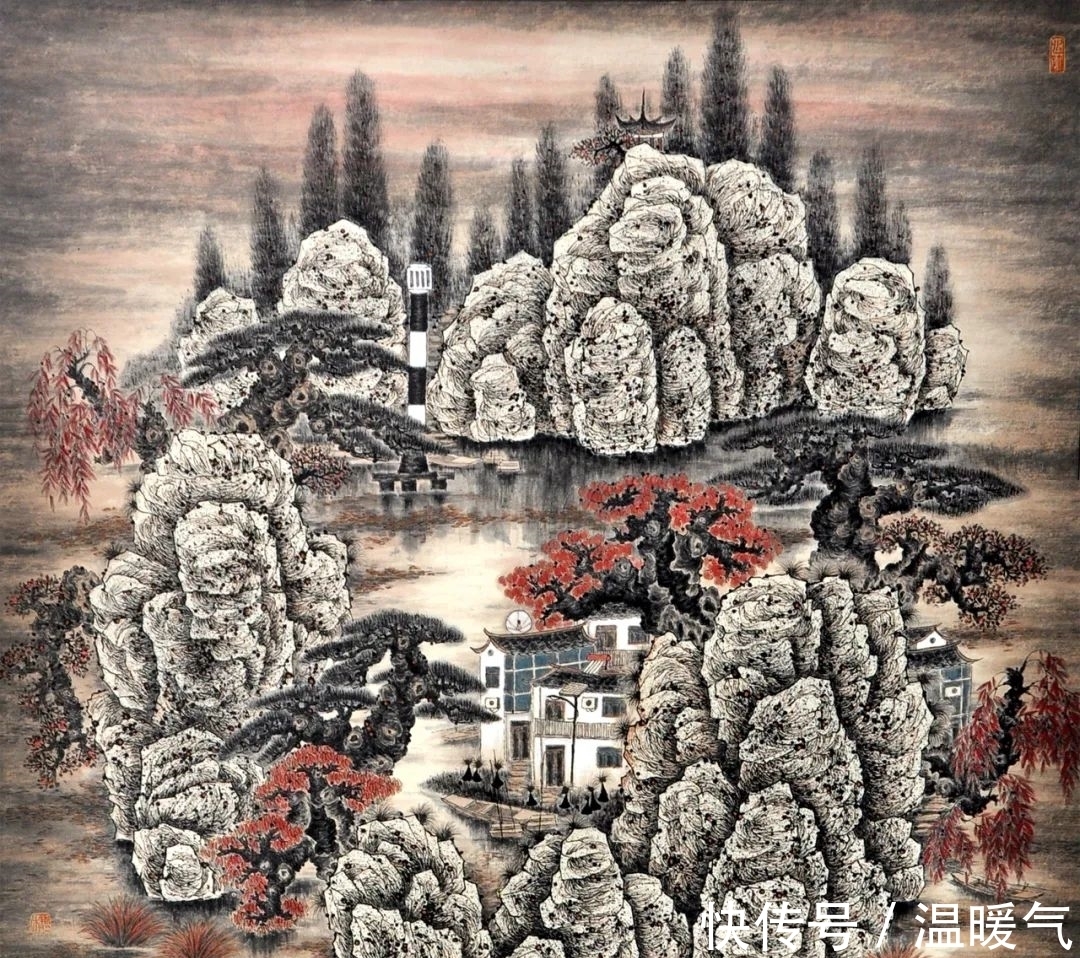 忠树作品我想说二点:首先是注重传统,但不拘泥,善于互衬对比的手法,在传统的吸取中探求新意。