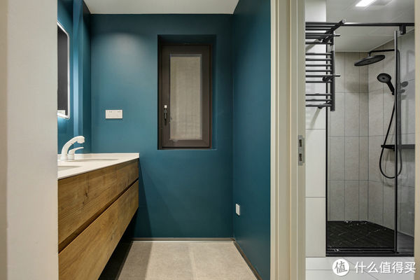 两卫改一卫,实现了三分离设计,很明显,有蓝色的加入,其实在厨房与餐厅间,也有少量的蓝色,对它不同色块的加入,让家居效果更加出彩。而且蓝色有一种静谧美,让人倍感舒服。