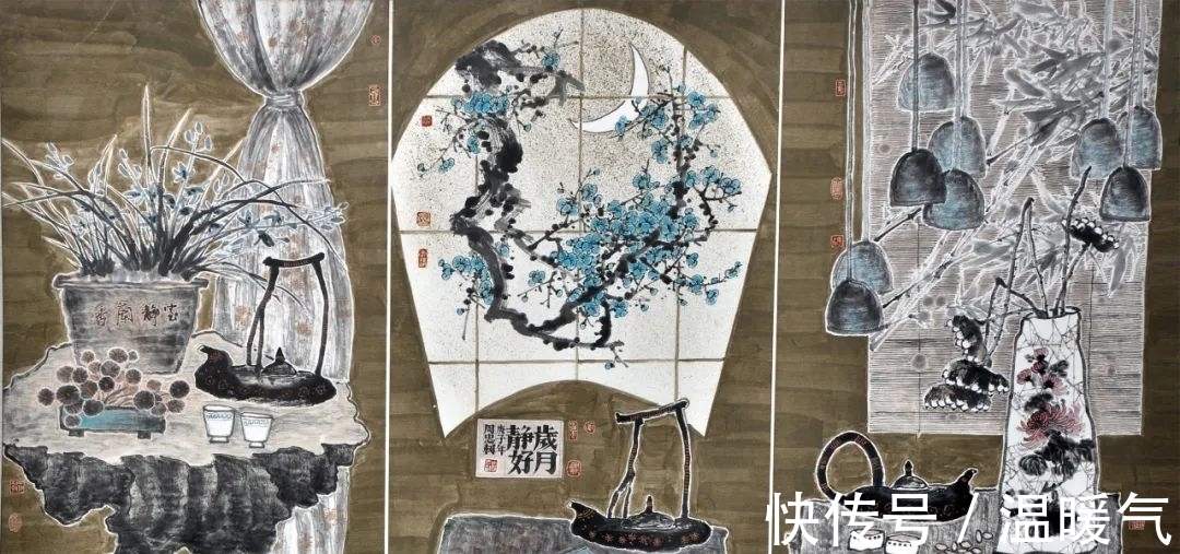 忠树作品我想说二点:首先是注重传统,但不拘泥,善于互衬对比的手法,在传统的吸取中探求新意。